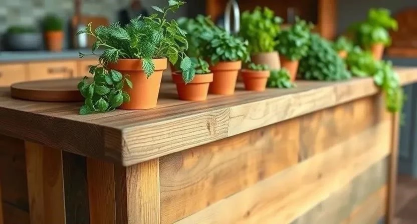 - Кухня: Используйте натуральный камень, деревянные столешницы, свежие травы в горшках и хорошее освещение.