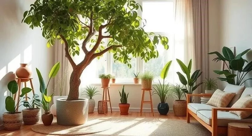 - Фикус: Большое растение, которое создает ощущение тропического леса.