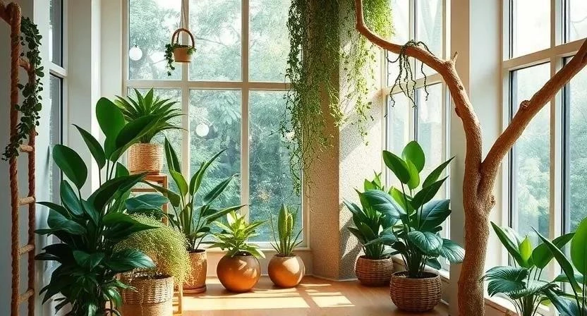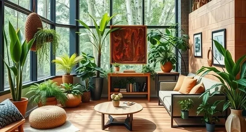 Какие растения подходят для биофильного дизайна? Выбор растений зависит от освещенности и влажности помещения. Фикусы, монстеры, сансевиерии, спатифиллумы – это популярные варианты.