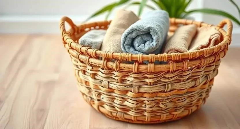- Натуральные материалы в хранении: дерево, бамбук, ротанг, текстиль