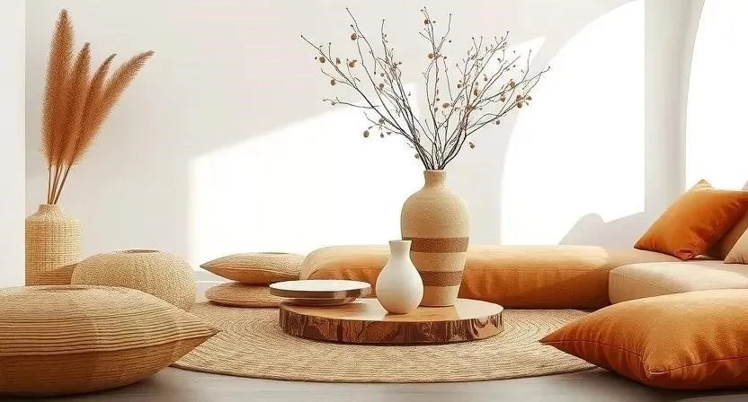 - Гостиная: Используйте растения, натуральные материалы, мягкие цвета и естественное освещение.