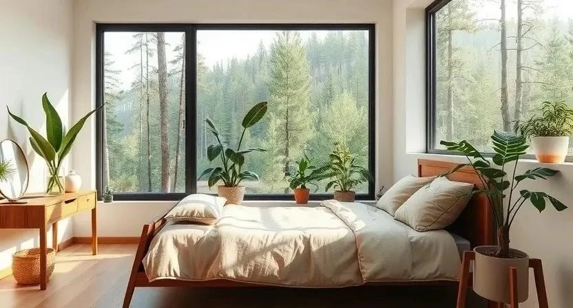 Как максимизировать естественное освещение в биофильном интерьере? Открывайте окна, используйте светлые шторы и зеркала.