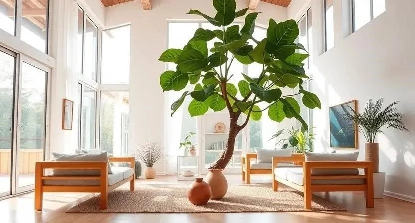 | Фикус | Крупное растение, создает уют | Регулярный полив, яркий свет |