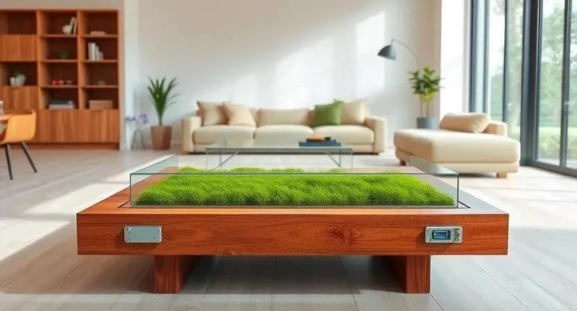 - Вставки в столы: Мох может быть использован для создания уникальных столешниц.