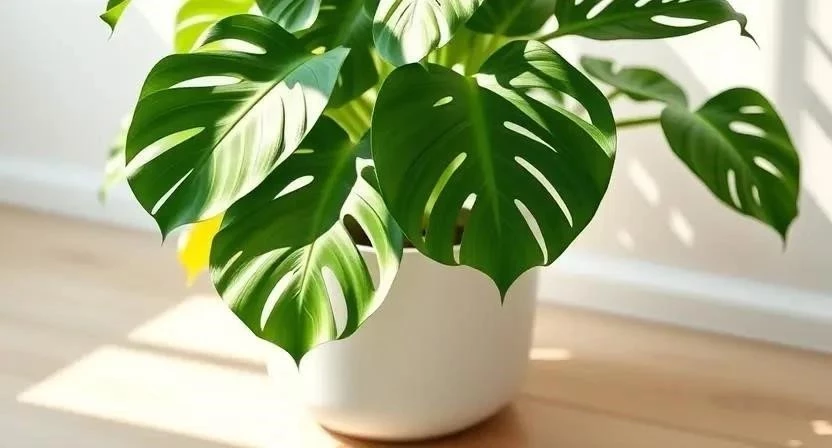 - Монстера: Крупное растение с эффектными резными листьями. Требует яркого рассеянного света и регулярного полива.