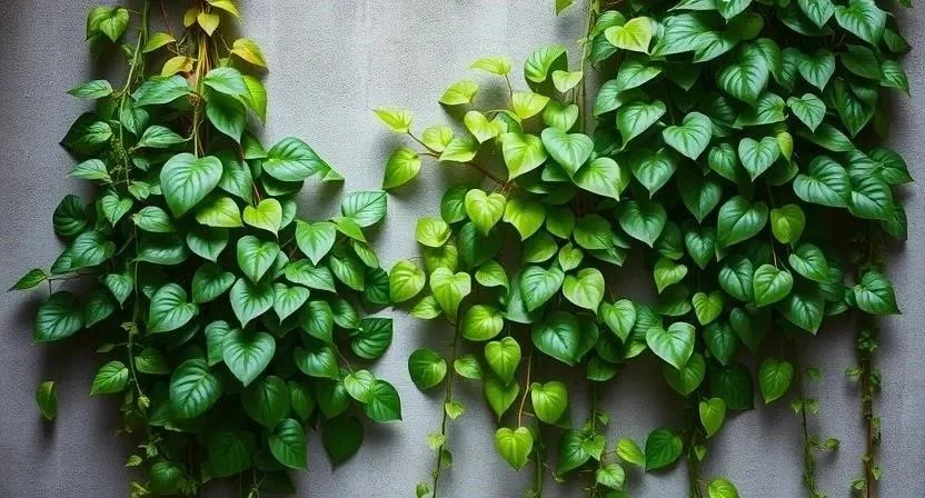 - Вертикальное озеленение (лианы‚ мхи‚ суккуленты на стенах): сциндапсус, вьющиеся растения. Вертикальное озеленение – это отличный способ сэкономить место и создать оригинальный дизайн. Сциндапсус, например, прекрасно подходит для вертикального озеленения благодаря своим длинным и гибким побегам.
