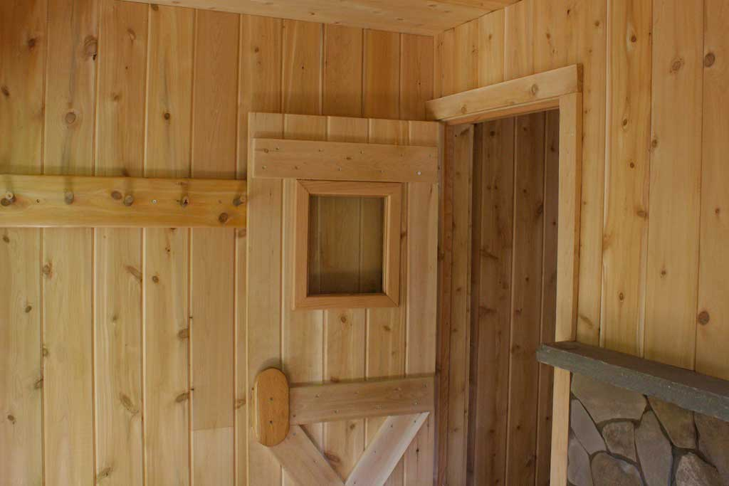 Оптимальный вариант для парной – установка двустворчатого притвора, который можно держать слегка приоткрытым при чрезмерной задымленности помещения. Устанавливая дверь в бане, не забывайте о главных требованиях:
