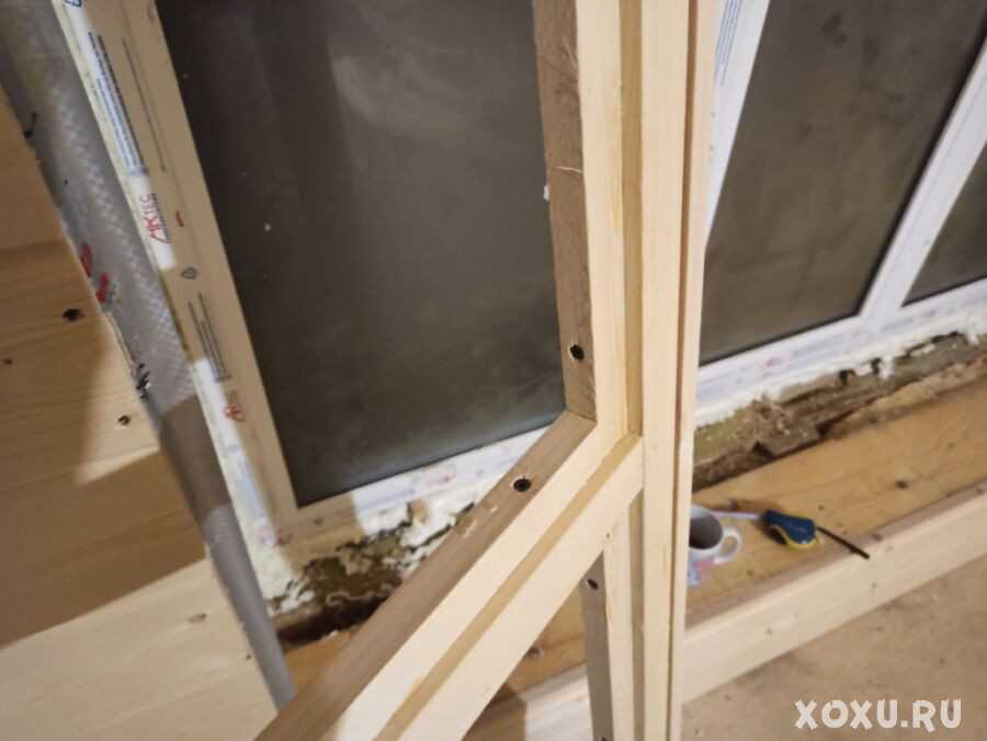 Далее фанера размечается, и прикручивается. Края также пенятся к прилегающим брускам. То есть, фанера вставляется внутрь рамок: