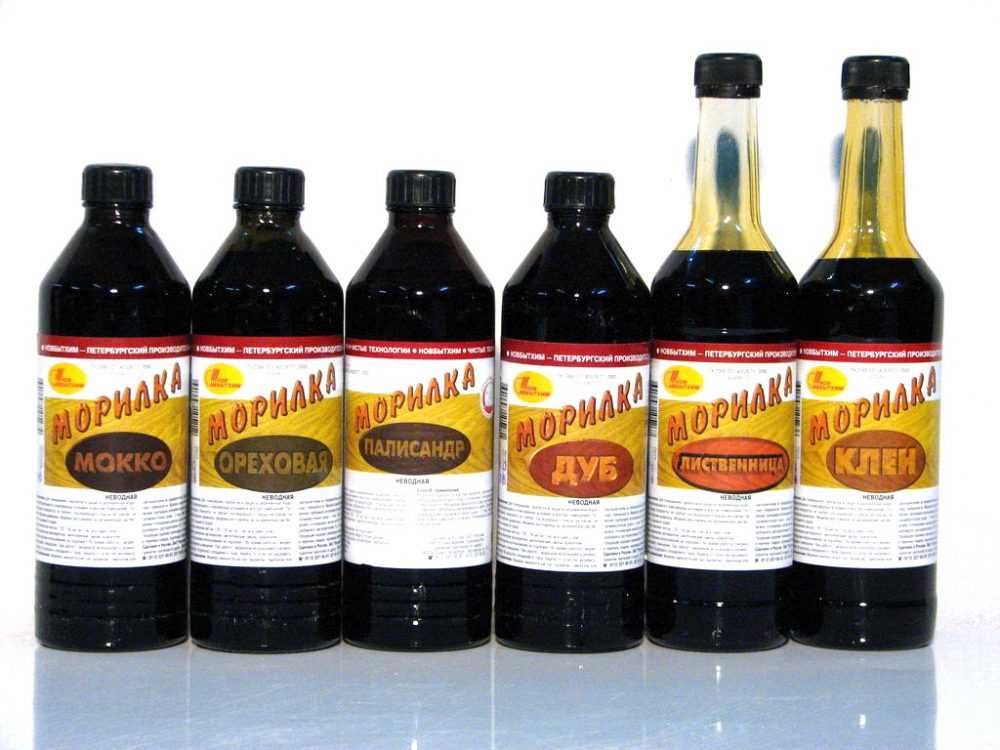 - Морилка. Традиционный вариант обработки деревянных поверхностей, способный придать им новый оттенок, скрыв при этом повреждения, царапины или сколы.