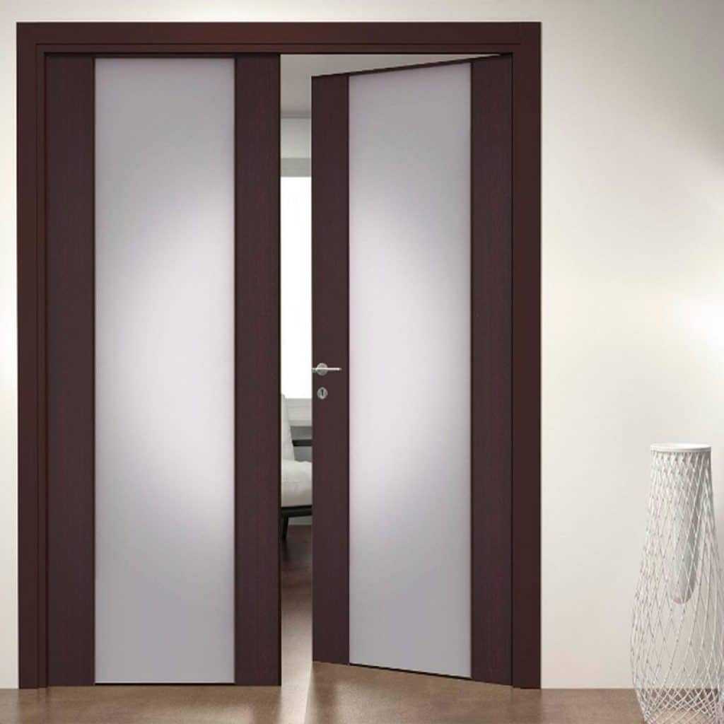 С декоративной целью по периметру межкомнатных дверей раздвижных используют обрамление из пластика, МДФ из планок древесины. Стандартные размеры двухстворчатых межкомнатных дверей при высоте около 2 м. могут составлять до 1.8 м. Такие размеры наиболее распространены для двух створок, состоящих из остекленных или монолитных (глухих) полотен. В случае, когда стандартные размеры межкомнатных дверей раздвижных не соответствуют ширине проемов, то возможно увеличение ширины за счет добавления одной или нескольких створок.