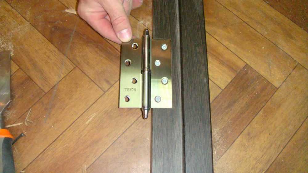 - хорошо выровняв все части, навесы фиксируют у основания двери шурупами.