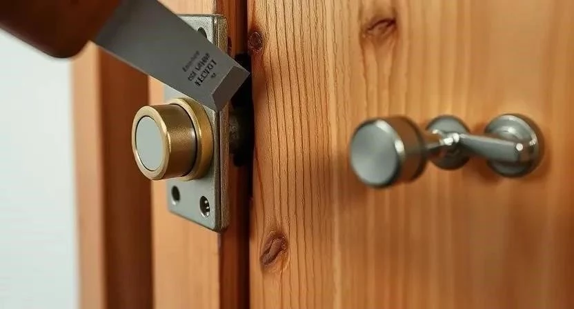 6. Установка ответной планки: Установите ответную планку на дверную коробку, совместив ее с шпинкой ручки.