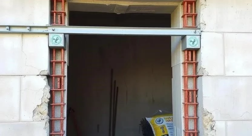 После вырезания проема необходимо его усилить, чтобы предотвратить обрушение стены. Установите перемычку над проемом, которая будет поддерживать вес стены. Заармируйте проем арматурой и залейте бетоном. Я предпочитаю использовать металлические перемычки, так как они более надежны и долговечны. Важно правильно рассчитать нагрузку на перемычку, чтобы она выдержала вес стены.