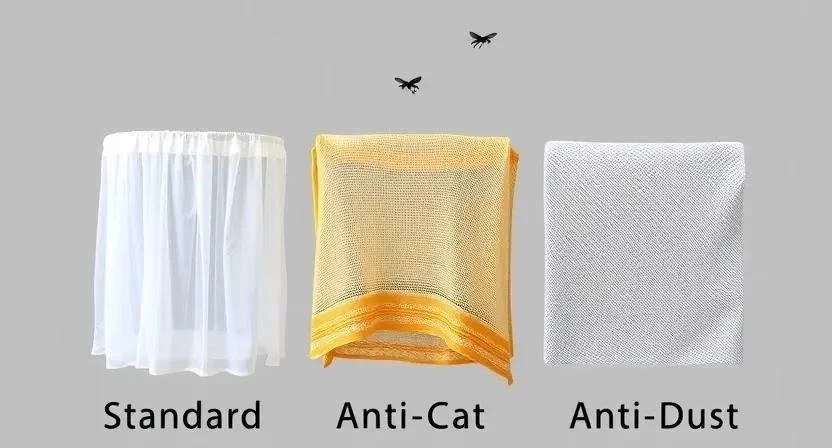 Выбор сеток: Виды противомоскитных сеток (стандартные, антикошки, антипыль), материалы, размеры