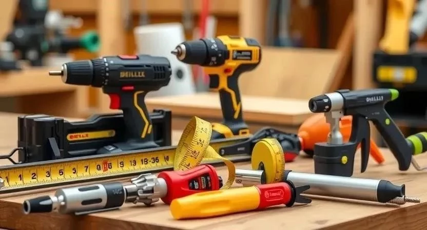 - Инструменты: перфоратор, дрель, шуруповерт, уровень, рулетка, строительный нож, молоток, стамеска, шпатель, правило, кисти, валики.