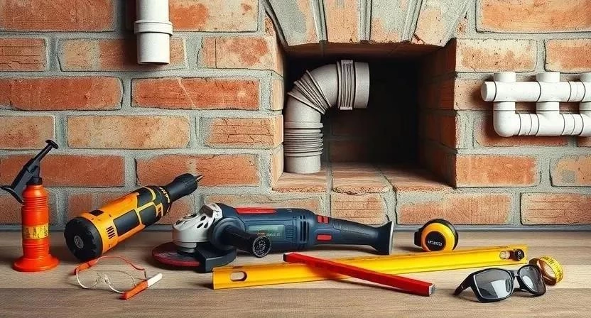 2. Прорезание отверстия. Аккуратно прорежьте отверстие в стене, используя перфоратор и болгарку. Работайте постепенно, чтобы избежать образования трещин. (Время: 2-4 часа)