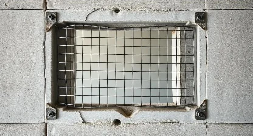 Теперь приступаем к монтажу сетки. Отрежьте кусок сетки нужного размера, оставив небольшой запас по краям. Приложите сетку к проему и закрепите ее с помощью саморезов или дюбелей. Важно, чтобы сетка была натянута ровно и плотно прилегала к краям проема. Чтобы грызуны не могли прогрызть сетку, используйте сетку с мелкими ячейками и толщиной проволоки не менее 2 мм. Я всегда использую оцинкованную сетку, так как она более устойчива к коррозии.