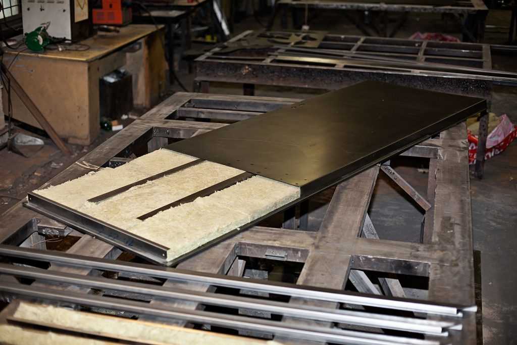 В основе находится каркас достаточной степени прочности. Для сборки конструкции преимущественно применяют сосновый брус. Отличие этого материала в невысокой цене и простой обработке. После того как каркас собран его обшивают листами МДФ. Для упрочнения, внутренняя часть заполняется теплоизоляционным материалом или сотовой конструкцией.