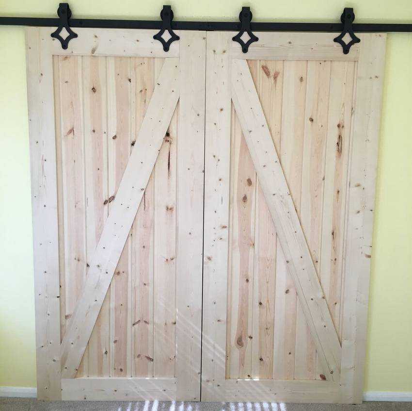 В строительном магазине первым делом приобретается механизм. По размерам дверных приемов и полотна консультанты смогут подобрать нужный вариант. Стоит учесть, что длина направляющих должна быть в 2 раза длиннее, чем полотно. Если система чуть длиннее, не беда. Лишнее всегда можно обрезать.