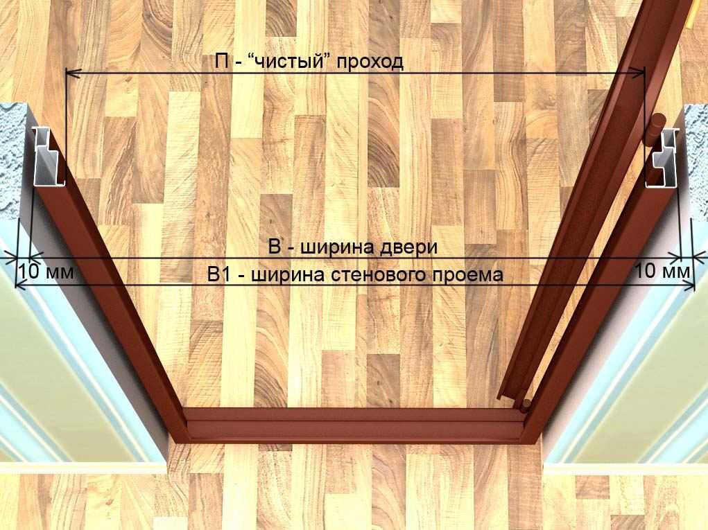 Очень важно точно знать ширину, а также высоту дверного проема и полотна. Зная эти параметры можно не только без труда и путаницы приобрести все, что нужно для создания раздвижных дверей своими руками