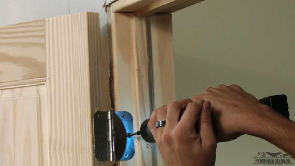 На следующем этапе производится установка данной фурнитуры для межкомнатных дверей. Дверная петля после фиксации шурупами должна располагаться на одной плоскости с деревянной поверхностью. Если изделие находится ниже общего уровня или, наоборот, выше, то это указывает на монтажную ошибку.