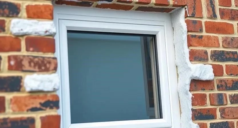 - Заполнение швов: Заполните швы между рамой и стеной монтажной пеной.
