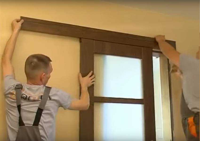 Пенал для раздвижных дверей устанавливается в проем в стене на уровень чистового пола: