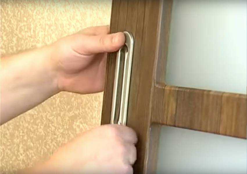 Шаг 3. Посередине полотна крепим механизм управления. Зачастую дверные ручки для дверей-купе делаются утопленными.