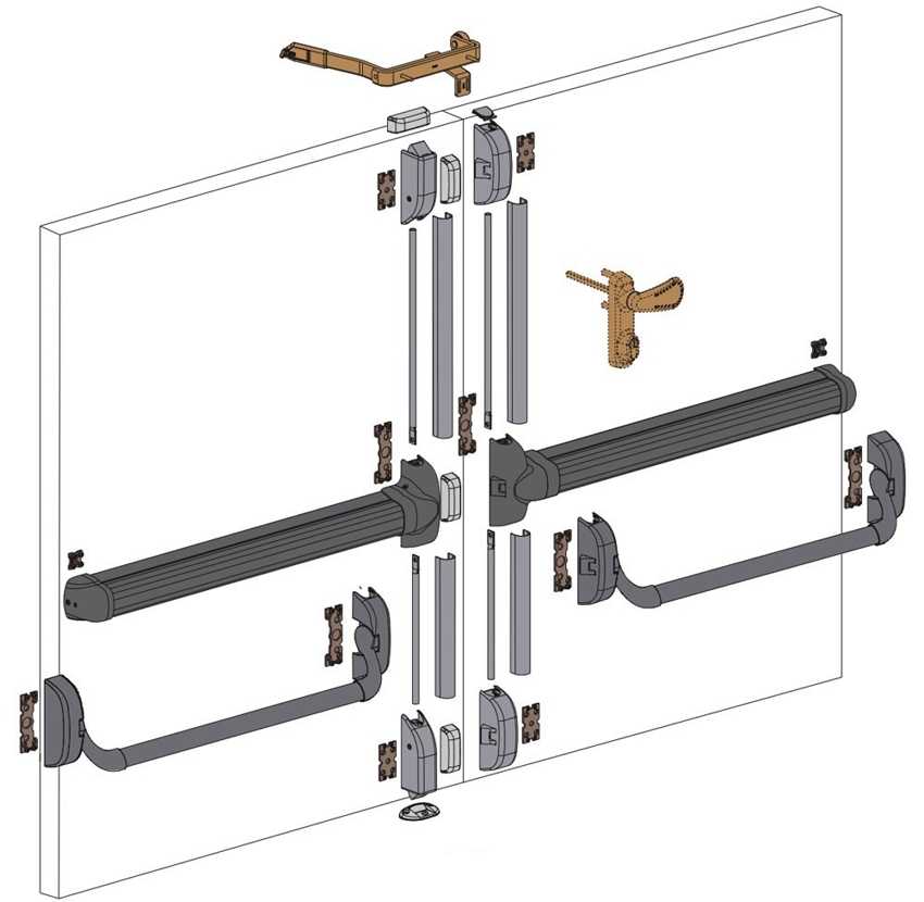 Монтажная схема сборки двустворчатой противопожарной двери с замком Антипаника