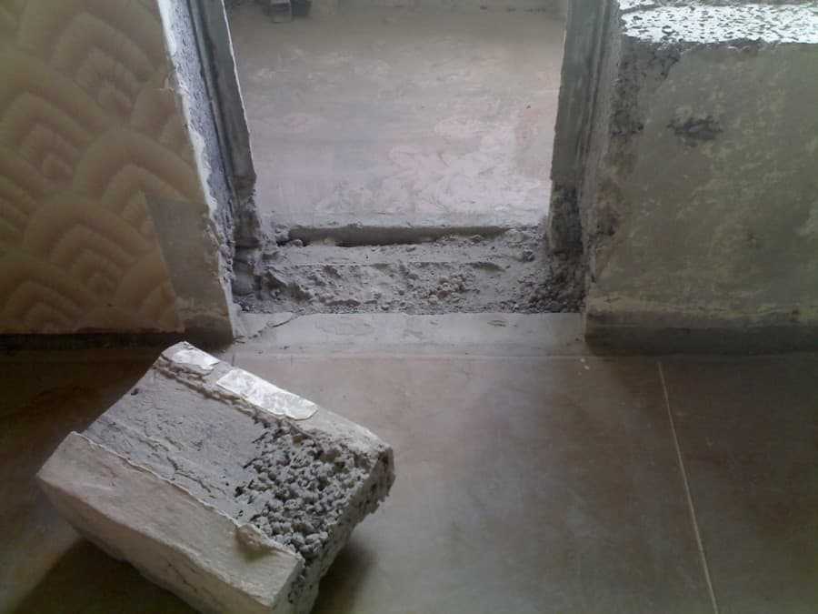 Как правило, для этого достаточно поднять открытую дверь вверх при помощи рычага вставленного в дверной проем. Затем старый деревянный короб удаляется при помощи гвоздодера, и проем зачищается до кирпича.