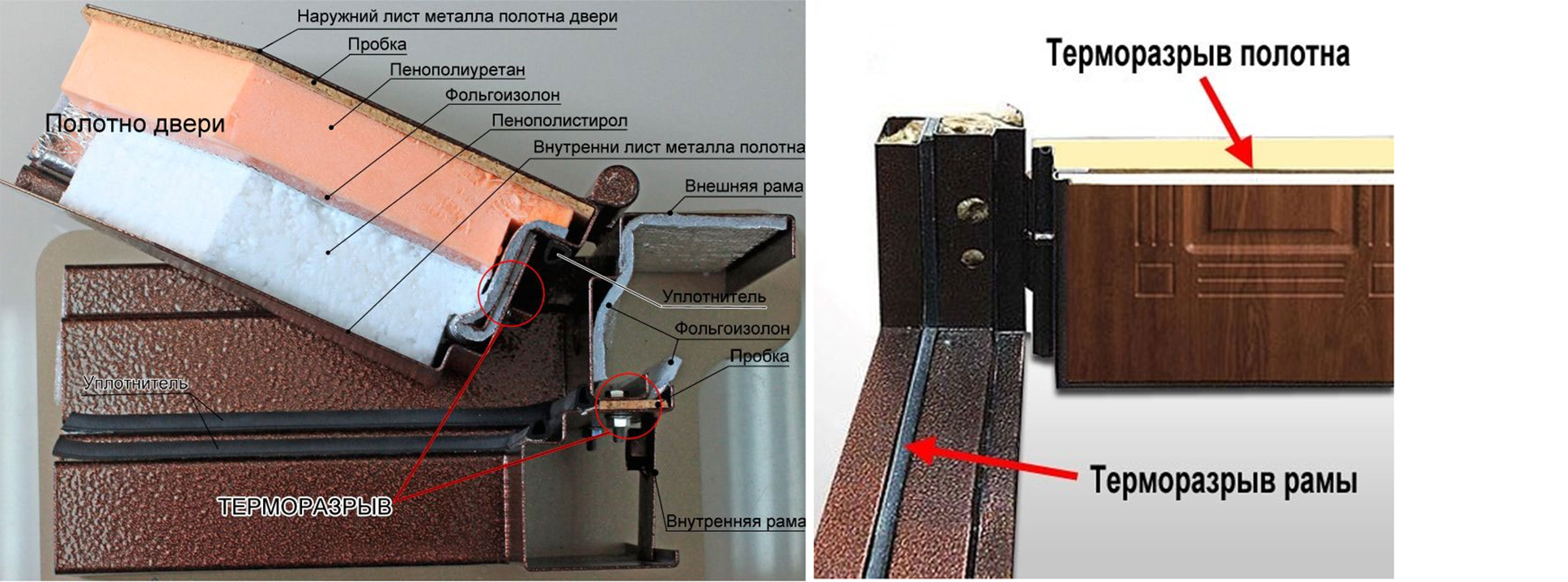 Терморазрыв может размещаться как в самом дверном полотне, так и в дверном коробе.