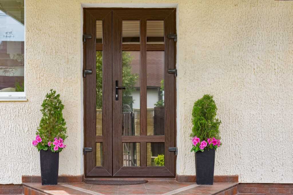 Установить козырек, который защитит двери от дождя, снега и града. Он также будет предотвращать негативное воздействие ультрафиолета в солнечные дни. Если непосредственно над дверью располагается балкон второго этажа – считайте, что проблема решена. Он либо другие архитектурные формы могут служить естественным барьером для защиты. Главное – не допускать, чтобы дверь страдала от погодных явлений.