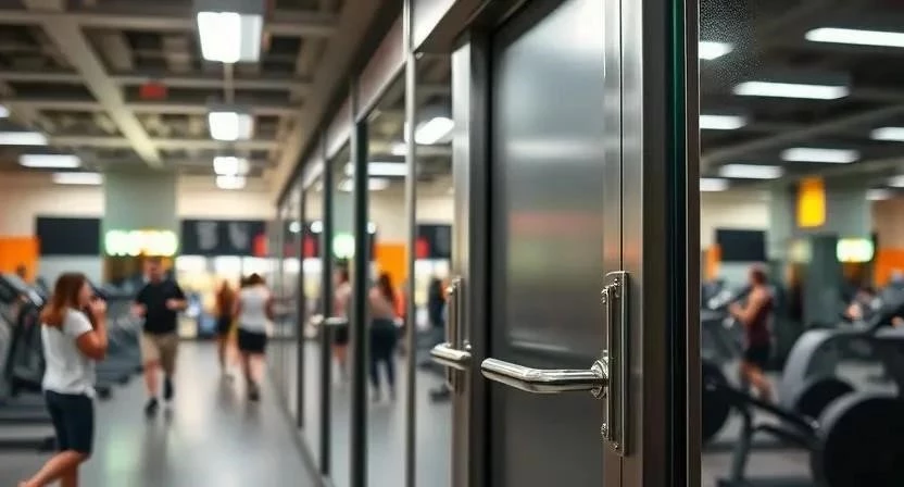 Выбор типа дверей зависит от их назначения и расположения. Для раздевалок часто используют L-образные двери или двери с двумя дверцами, что обеспечивает удобство и экономию места. Эвакуационные двери должны соответствовать строгим требованиям по пожарной безопасности и иметь панорамные стекла для визуального контроля. Двери для технических помещений должны быть надежными и обеспечивать защиту от несанкционированного доступа. Входные двери должны быть презентабельными и обеспечивать тепло- и звукоизоляцию. Вспомню, как однажды в старом фитнес-клубе, где я занимался, входные двери постоянно хлопали из-за сквозняков, что создавало дискомфорт для посетителей.