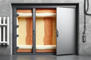 - Дерево: Используется для создания дверей с эстетичным внешним видом, но требует специальной обработки для защиты от влаги и огня.