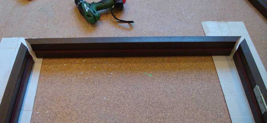 - Рулеткой измеряется высота и ширина проема для двери. По этим данным вырезается верхняя рейка и две боковые стойки, после чего они складываются в форме буквы «П». Лучше монтировать коробку в лежачем положении.