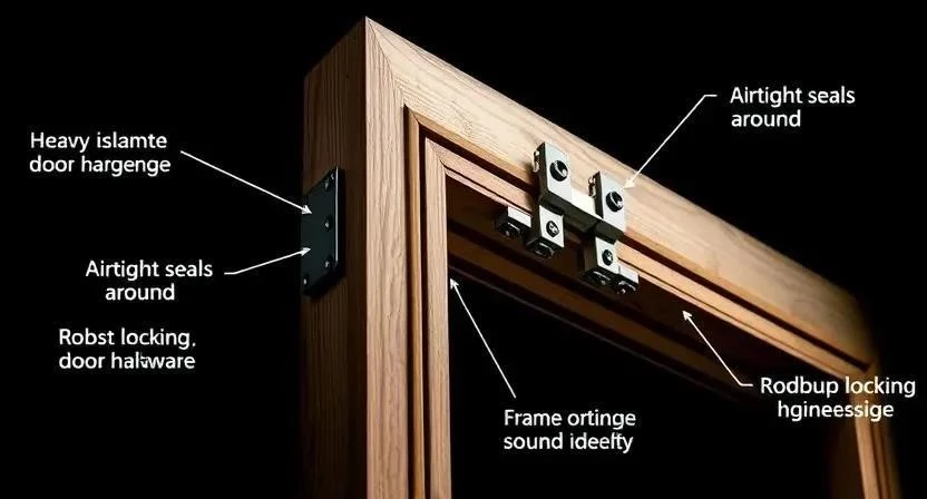 Конструкция звукоизоляционной двери играет ключевую роль в обеспечении эффективной защиты от шума. Дверная коробка должна быть изготовлена из прочного материала и иметь плотное прилегание к стене. Порог двери должен быть герметичным и предотвращать проникновение шума снизу. Петли должны быть надежными и обеспечивать плавное открывание и закрывание двери. Уплотнители должны быть качественными и обеспечивать плотное прилегание двери по всему периметру. Важно, чтобы все элементы конструкции двери были подобраны с учетом требований к звукоизоляции.