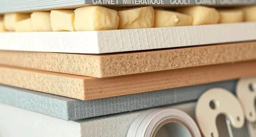 Сравнение материалов: минвата – бюджетный вариант, но требует дополнительной защиты от влаги; гипсокартон – универсальный материал, но не обладает высокой звукоизоляцией; демпферная лента и виброподвесы – эффективные, но более дорогие решения.