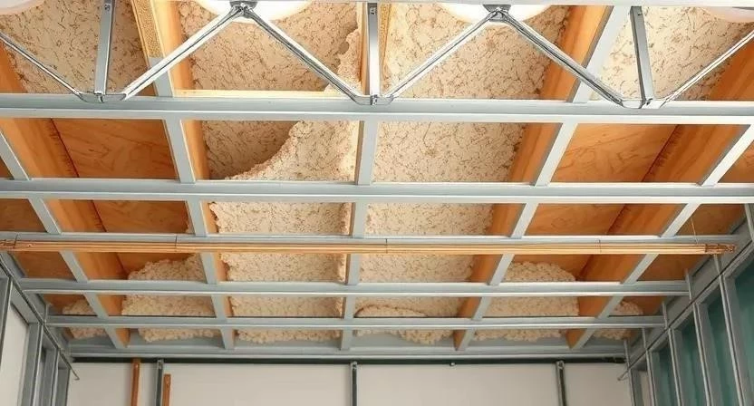 - Комбинированный способ: Сочетает в себе элементы каркасного и бескаркасного методов. Например, можно уложить звукопоглощающие маты на потолок, а затем создать каркас и обшить его гипсокартоном.