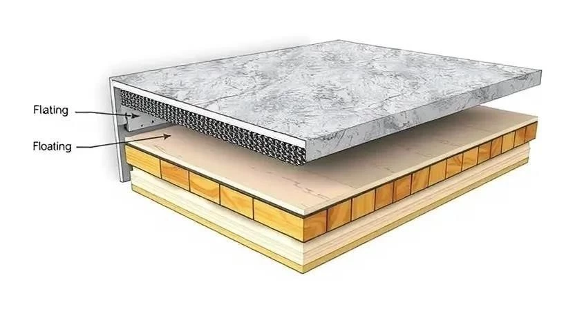 Ответ: Для борьбы с ударным шумом необходимо использовать звукоизолирующую подложку под напольное покрытие и плавающую стяжку.