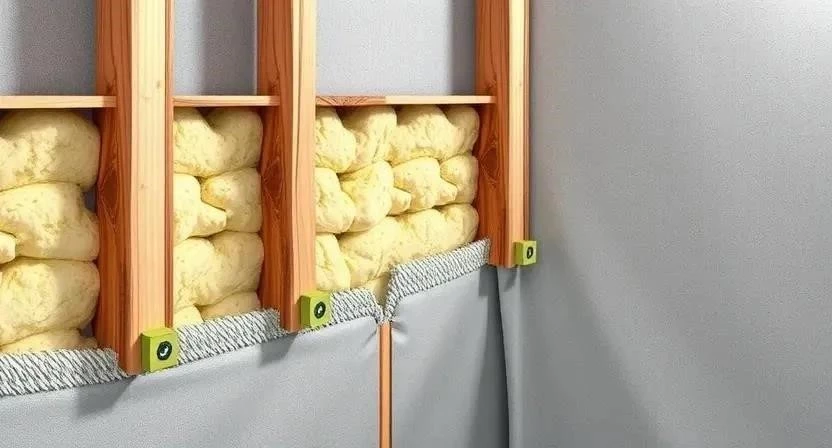 - Монтаж пароизоляции: Закройте звукоизоляционные материалы пароизоляционной пленкой.