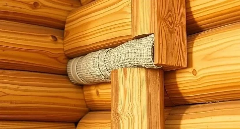 - Укладка утеплителя: Аккуратно уложите утеплитель в межвенцовый шов, плотно прижимая его к бревнам.