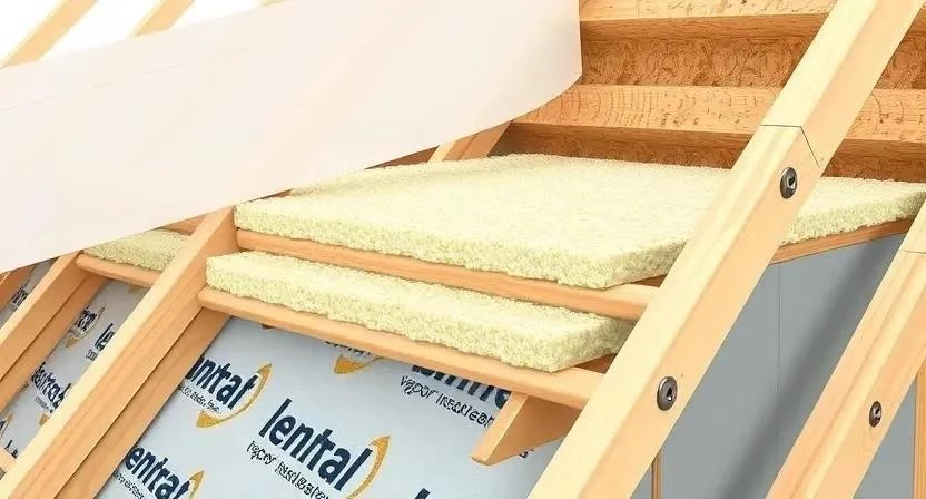 Ответ: Пароизоляцию крепят к стропилам снизу, с нахлестом 10-15 см, используя строительный степлер или саморезы.