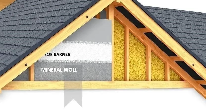 Технология выполнения: Важно обеспечить плотное прилегание утеплителя к стропилам, чтобы избежать образования мостиков холода. Вентиляционный зазор должен быть не менее 5 см. При монтаже пароизоляции необходимо тщательно проклеивать все стыки и швы.