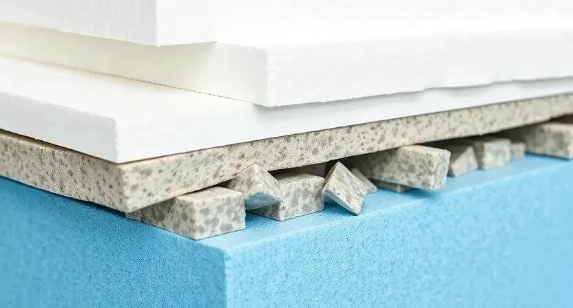 - Пенопласт: Легкий, недорогой, но горючий материал.