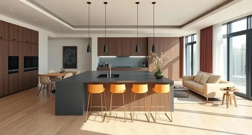 - Барная стойка для зонирования кухни-гостиной