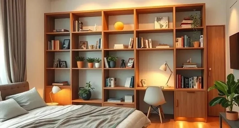 - Книжный шкаф для зонирования гостиной