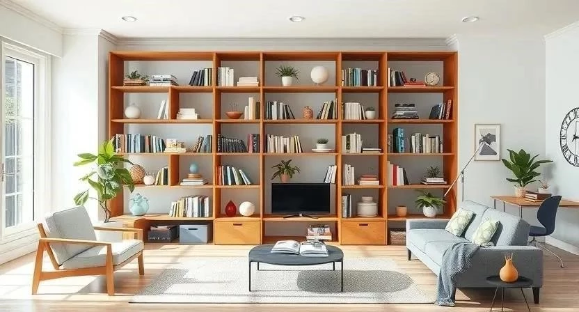 | Стеллажи | Зонирование, хранение книг и вещей | Универсальность, вместительность | Могут занимать много места |