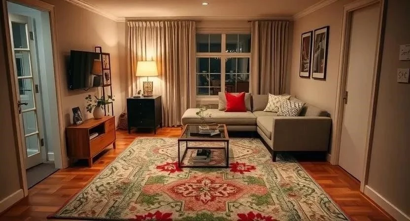 - Текстиль: Ковры, шторы, подушки для создания уюта и разделения пространства.