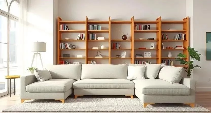 - Использование стеллажей: Открытые стеллажи служат не только для хранения, но и для визуального разделения пространства.