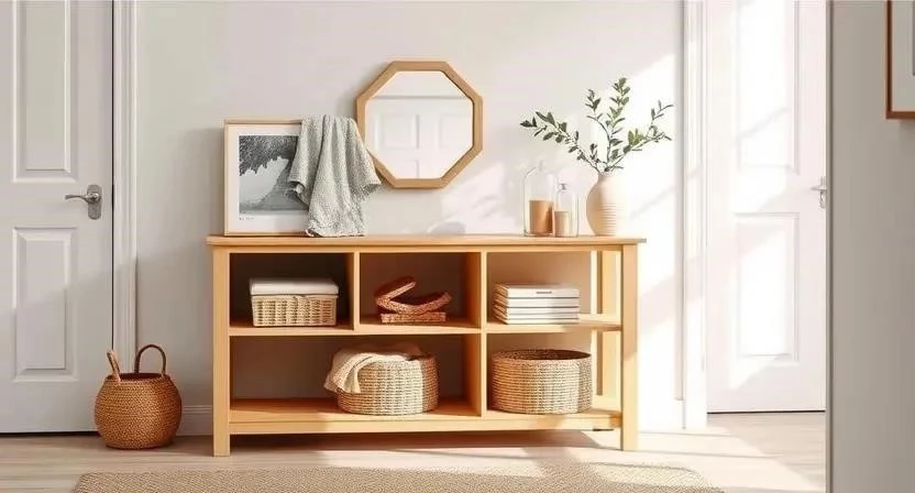 - Консоли с ящиками: Идеальны для хранения ключей, перчаток, счетов и других мелочей.